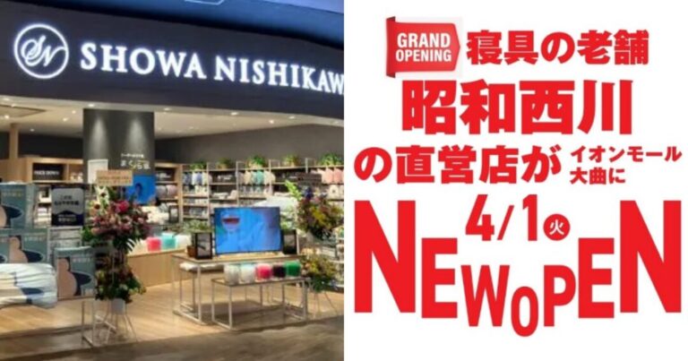 【イオンモール大曲】寝具の老舗「昭和西川」直営店が2025年4月1日オープン決定!秋田県初となる直営店