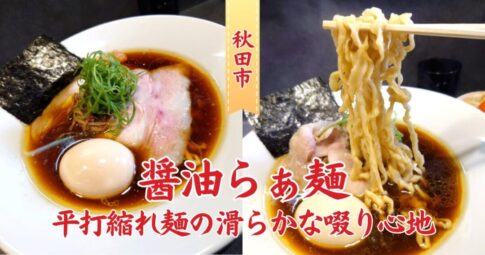ラーメン【秋田市】Ramen Aoで感動の醤油らぁ麺!平打縮れ麺とスープの調和が見事。本日の麺活・サラリーマン佐藤