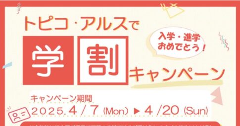 秋田駅直結のショッピング施設「トピコ」と「アルス」では、2025年4月7日(月)~4月20日(日)までの期間限定で、入学・進学を祝う【学割キャンペーン】を実施中です! 入学・進学おめでとう!秋田駅直結「トピコ・アルス」で…
