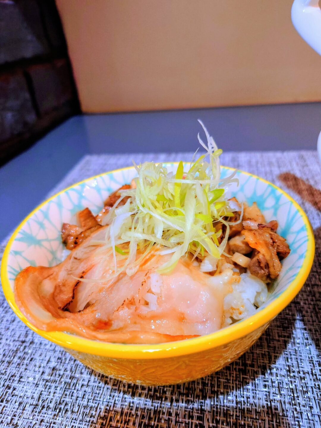 一緒に注文した「X炙りチャーシュー丼」は、香ばしい風味と豚の濃い旨みが際立つ仕上がりで、スプーンが止まらなくなる完成度。
