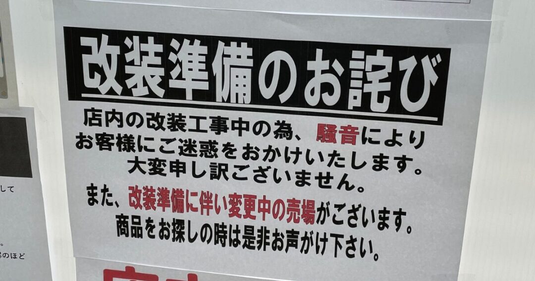 店舗に掲示されていた案内によると、現在は改装準備のため、売り場の一部が変更されているとのことです。